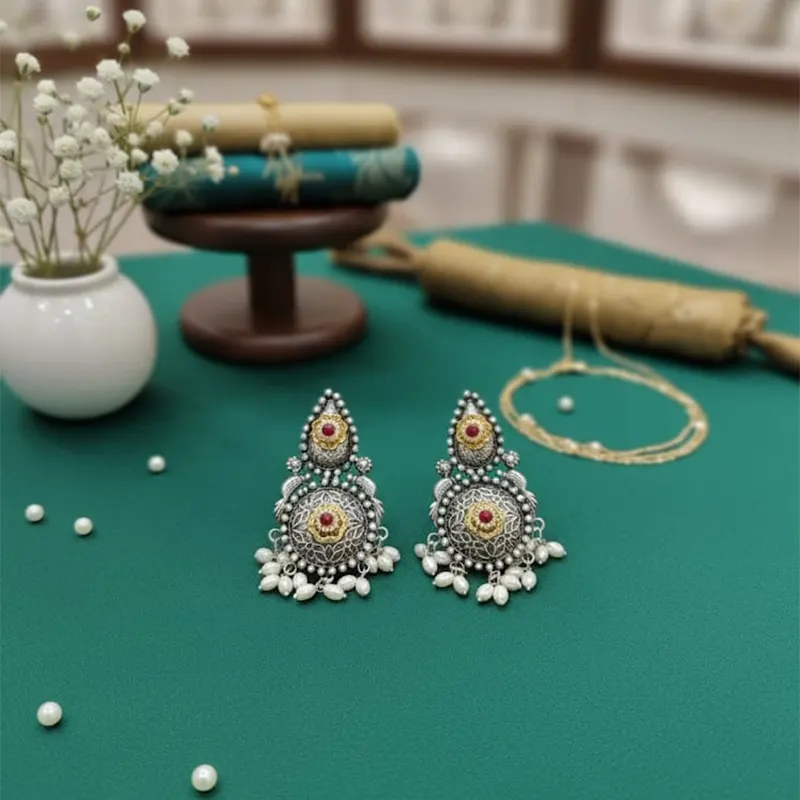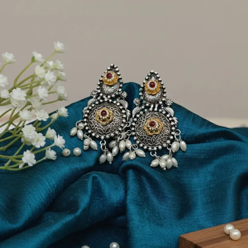 German Golden & Silver Meenakari Earring With Pearl Drops