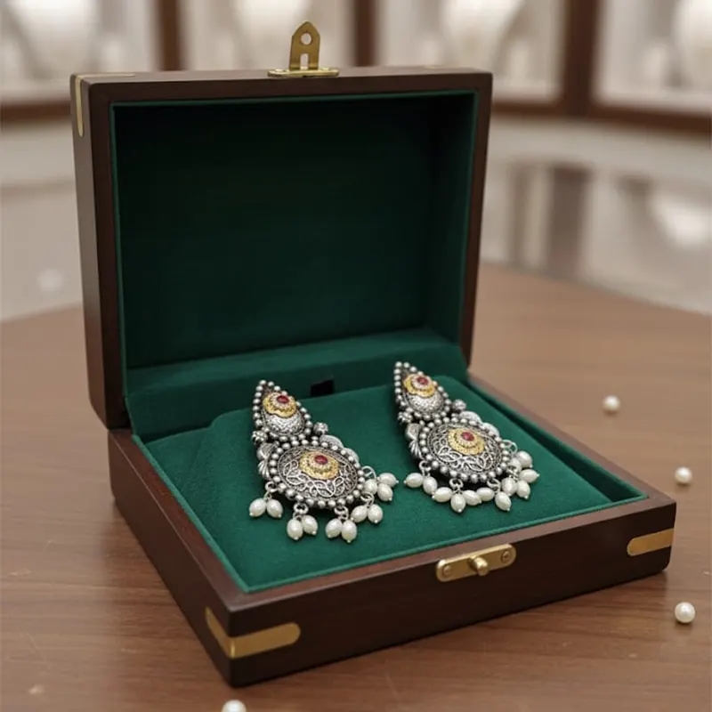 Be the first to review “German Golden & Silver Meenakari Earring With Pearl Drops” Cancel reply