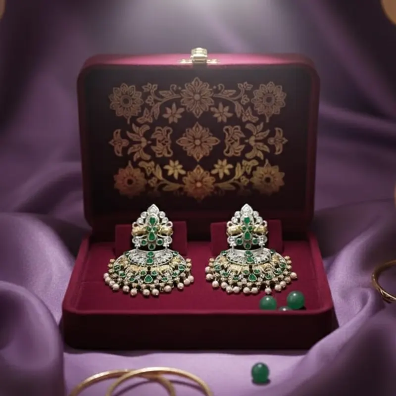 - For a stunning festive look, pair these jhumkas with a silk saree, Anarkali suit, or even a simple kurta with a dupatta. Let your jhumkas steal the spotlight and add charm to your overall appearance.