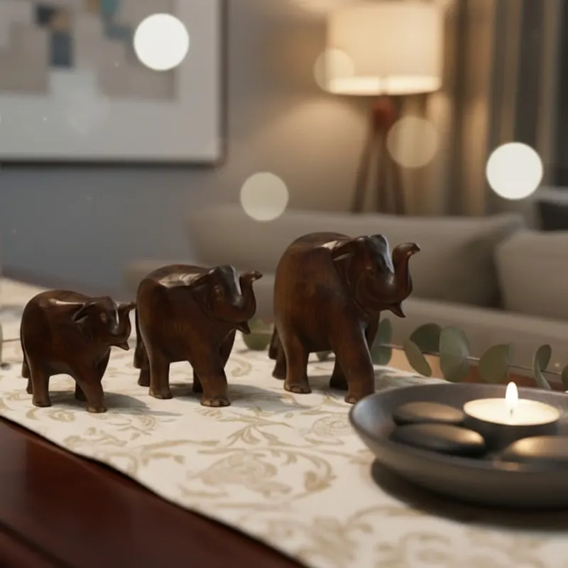 - Handcrafted wooden elephant family of 3.