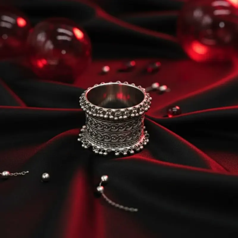 Navratri Ethnic Silver Oxidised Adjustable Afghani Ghungroo Cuff Kada Bracelet For Women Traditional Design: Inspired by Afghani tribal jewelry, adding a unique ethnic flair to your Navratri outfit.