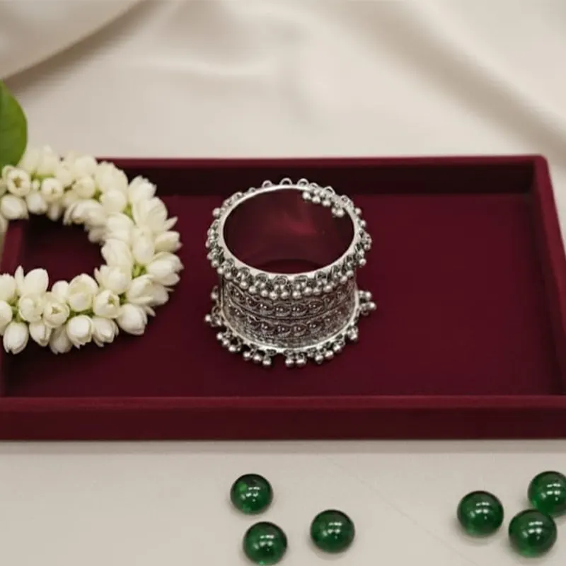 • Oxidised Silver Finish: The antique silver look enhances the bangle’s vintage appeal.