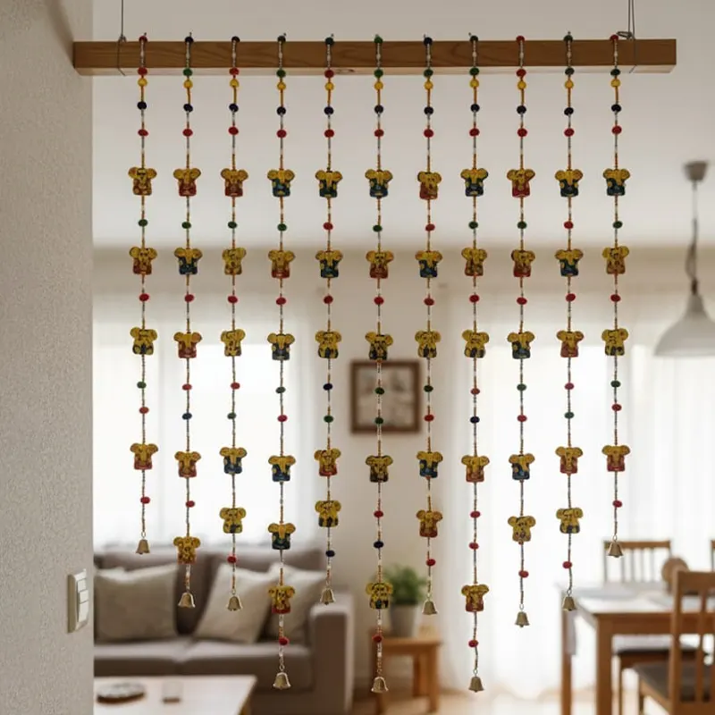 Handcrafted traditional paper-mache Lord Ganesha and elephant door hanging. Vibrant, multicolor design symbolizes prosperity and good fortune. Lightweight, easy to hang, ideal for festivals, housewarming, Diwali, or spiritual décor.