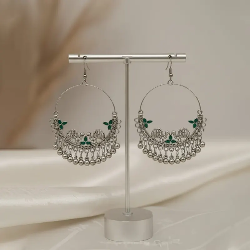 Silver Plated Oxidised Peacock Chandbali Earrings