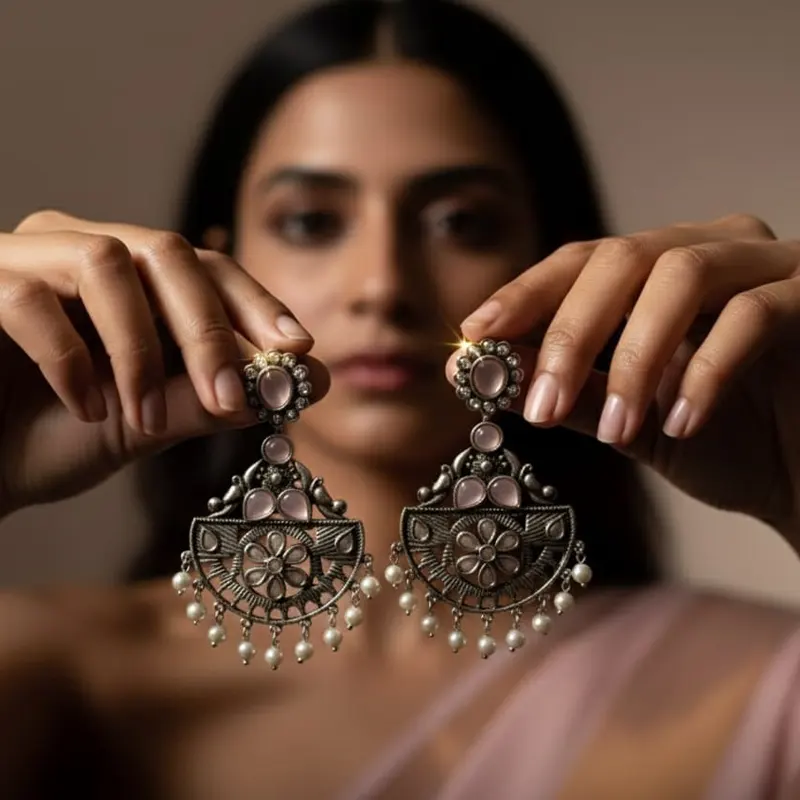 - Jhumka earrings are a timeless jewellery ornament that never goes out of fashion. The beauty of jhumkas lies in their versatility, as they are available in a wide range of styles. This pair of Oxidised Stones & Beads Jhumka Earrings is vibrant yet elegant, making it an ideal choice for festive occasions.