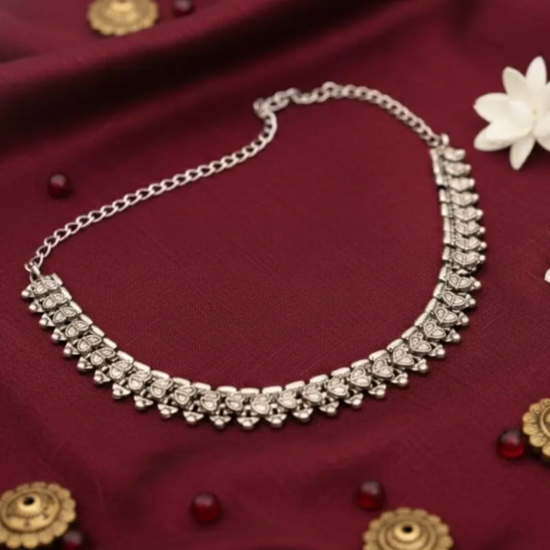 The earrings shown are silver-toned and incorporate small decorative beads, sometimes referred to as ‘ghungroos’.
