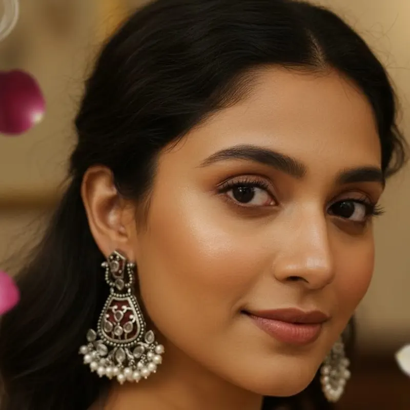 • Style: The earrings feature a traditional Indian design with an oxidized silver finish.