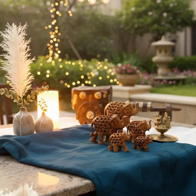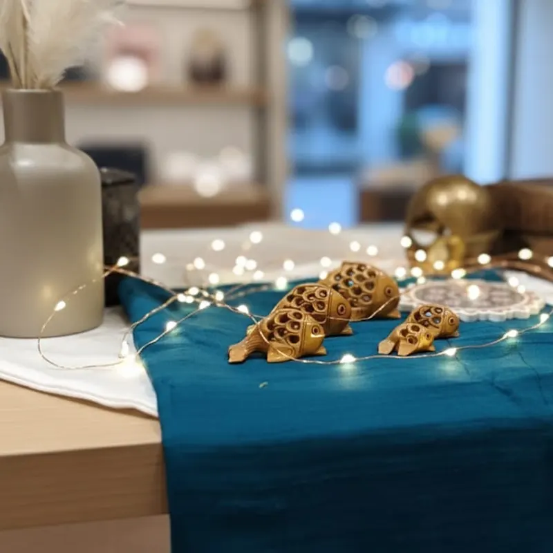 - Majestic walking postures of under cut or jali work of different animals .Jhali cutting is a quite complex & is a process of removing the wood inside the figurine.This jali cut elephant is carved with a baby inside & it is quite artistic & aesthetic.This figurine is finely carved by highly skilled & experienced artists in india.