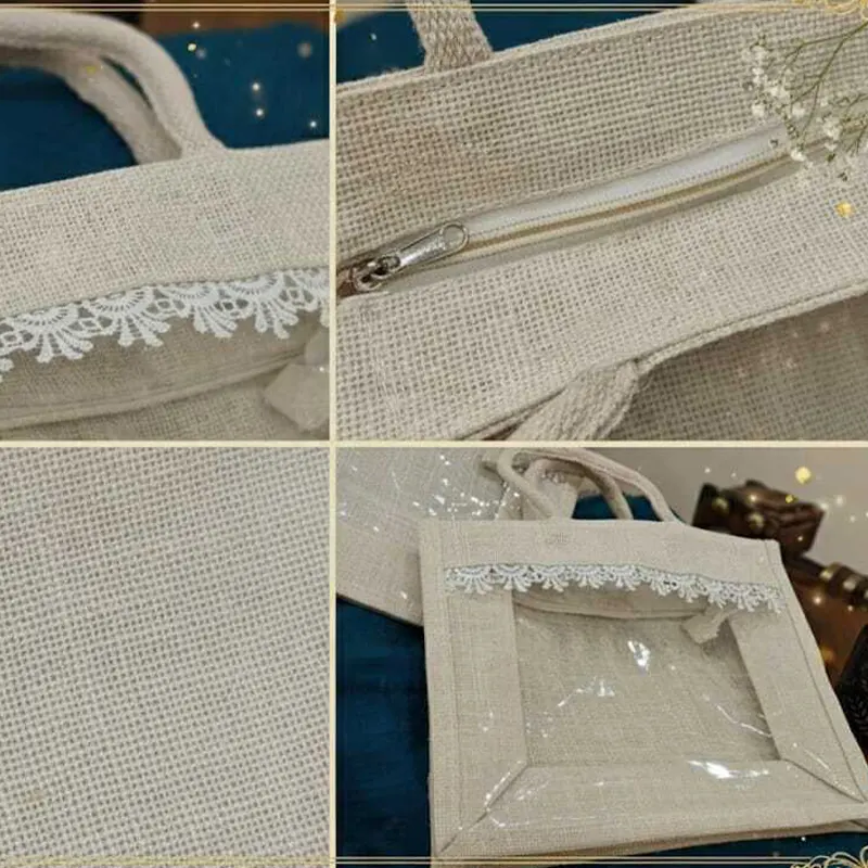 Be the first to review “White Jute Bags With Lace Work” Cancel reply